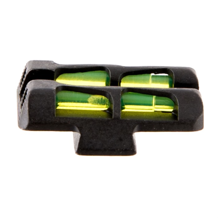 The new LITEWAVE sight design from HIVIZ features an innovative, diagonal-wave design that increases durability to the protective exoskeleton and allows for more exposed surface area for the LITEPIPE to gather light from all angles, for the brightest sight available. GLLW11 is 6.1mm high, and fits models 42 and 43. GLLW15 LITEWAVE Rear Sight is 6.5mm high, and fits 9mm, .40 S&W, and .357 Sig models. All rear sights include red, green, and black LitePipes.