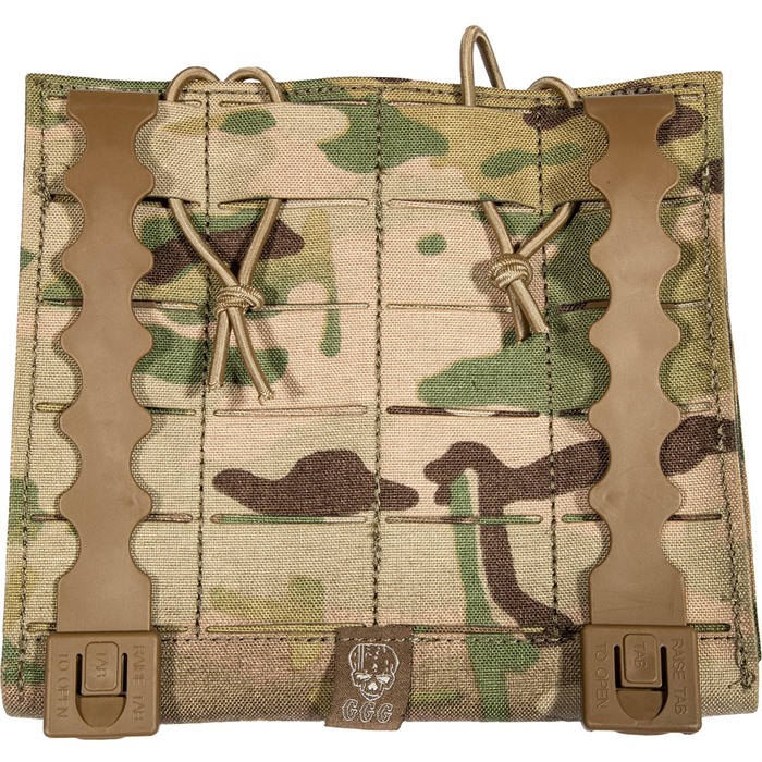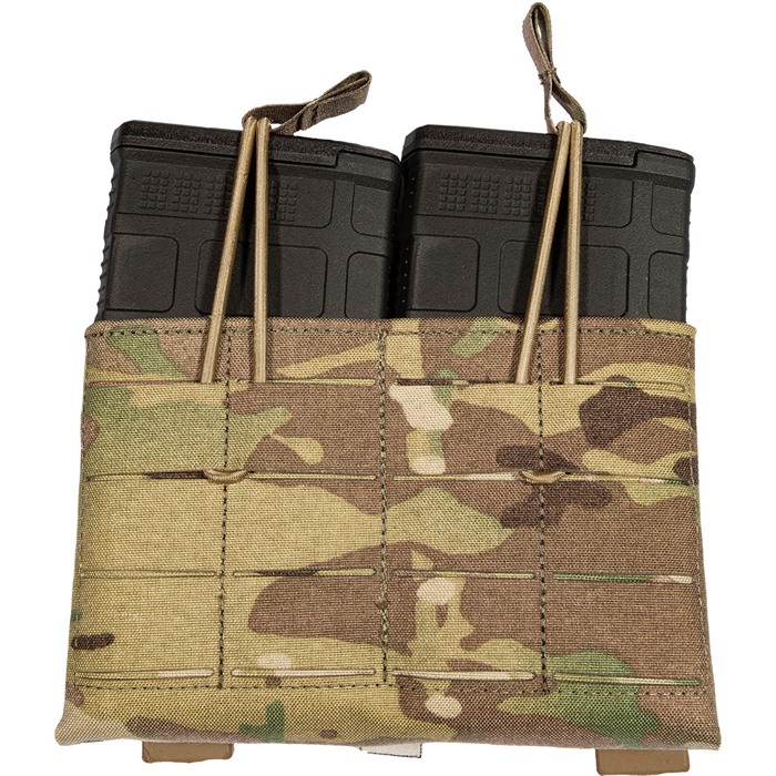 Grey Ghost Gear's Double 7.62 Mag Panel is constructed of laser cut laminate nylon, which means it's lighter and more streamlined than ever before! It will securely hold two twenty round 7.62x51 NATO (.308) mag. Ideal for SCAR Heavy, M-14, HK-91, FN FAL or most other 20 round 7.62 rifle magazines. Features an open top design with an adjustable bungee retention strap that allows for silent removal of your magazine and modular webbing on the front and back to allow for stacking other pouches. Attaches to any MOLLE/PALS style webbing with two included short MALICE CLIPS®. Available in MultiCam®, Coyote Brown and Black. Measurements: 4" x 6" x 1"