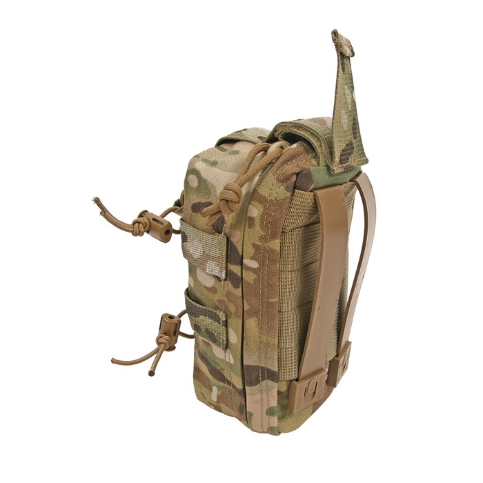 This pouch is a game changer, no doubts about it. Grey Ghost Gear thought of everything that their medical professionals need to keep people alive, and have devised one of – if not THE best – medically minded pouches on the market. Their Slim Medical Pouch is designed to take up only two modular webbing channels on your vest or other MOLLE compatible platform. As its name states, it has a slim profile and is specifically designed to carry your most important trauma supplies. Dual zippers running the full length of the pouch, combined with a large pull tab, allow quick access to the contents inside the pouch. On the inside is plenty of room for essential trauma items as well as a flat pocket and elastic bands to secure various items. A bungee retainer system on the front of the pouch can secure a tourniquet and two rows of modular webbing on either side can hold a pair of trauma shears or other important items. The pouch is constructed of 500D Cordura® Nylon and attaches to any MOLLE/PALS style webbing with the two included MALICE® Clips. This pouch was designed to carry the following items, but is capable of storing a variety of other items just as well: H&H compressed Gauze x2 Quickclot Combat Gauze 6" Israeli Compression Bandage 28 FR NPA Decompression Needle 1 pair of Nitrile Gloves HALO Chest Seal x2 CAT Tourniquet x2 Trauma Sheers Please Note: Medical supplies listed are not included with purchase. Dimensions: 5" tall x 4" wide x 2.5" deep Available in Black, Coyote Brown, Ranger Green and MultiCam®