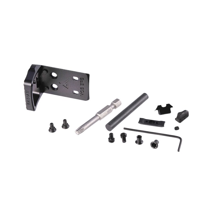 The Radian GUARDIAN Optic Mounting System provides unprecedented protection for your pistol red dot optic. Machined from 7075 aluminum & hard anodized, the design provides top/ front/side impact protection. Optional back-up sights, provide an unobstructed, irons forward sight picture. Their STUD-LOK ™ threaded stud/nut mounting interface is the most secure system on the market. This provides much longer thread engagement, greater hold down power, with increased shear resistance. TRU-SEAL™ eliminates the need for an added sealing plate. Pre-installed O-rings on the mounting screws hold the plate watertight to the slide, sealing out moisture, eliminating corrosion in the mounting threads.