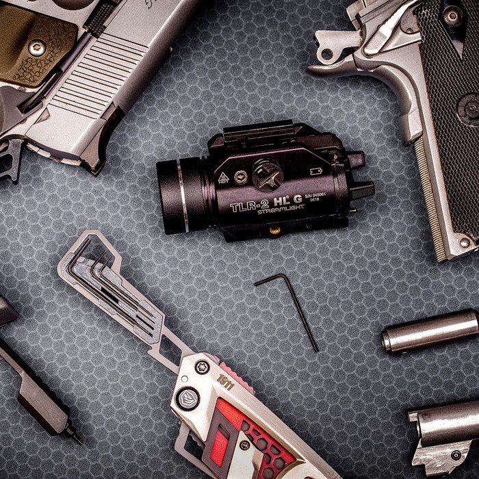 - Herramientas incluidas: punzón, raspador de carbono plano, lima de metal, gancho, llaves para tuercas (4mm, 5mm, 1/4”, 5/16”), hoja de cuchillo de punta caída de 2.6”, martillo de percusión, mira láser y llaves hexagonales para ajuste de gatillo (.028”, .035”, .050”, 1/16”)
