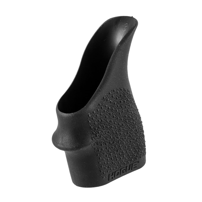 The new grip sleeves are designed to fit specific polymer pistols now on the market. The Beavertail Grip Sleeve line has been engineered with models for precision fits on specific firearms. The initial offerings in this series has sleeves designed for perfect fits on three sizes of polymer firearms. While each sleeve has been created for a precise fit on specific polymer framed firearms, they also alternatively fit many other similarly sized firearms with a fully functional and aesthetic fit. The Beavertail Grip Sleeves are installed by slipping them over the frame of the firearm until seated into perfect position. Once installed, the HandALL sleeve provides a single finger groove for instinctive handling of the firearm. The finger groove leads into a gentle palm swell that has been carefully designed to fit naturally in the hand. The beavertail built into the grip sleeve rises high along the backstrap of the frame giving full rubber contact with the hand allowing a higher hand-placement on the grip without the fear of the slide biting the skin between the thumb and the trigger finger. In addition to protection and comfort, the beavertail also cushions the hand during recoil. The HandALL is built from a long-lasting durable thermoplastic elastomer compound. This rubber ages very gracefully and keeps a firm, tacky feel throughout the life of the grip. It will not harden, split or crack with age or usage. The grip sleeve is textured with Hogue’s familiar Cobblestone™ texture, a series of small circular bumps that provide an efficient non-slip, non-irritating grip on the rubber.