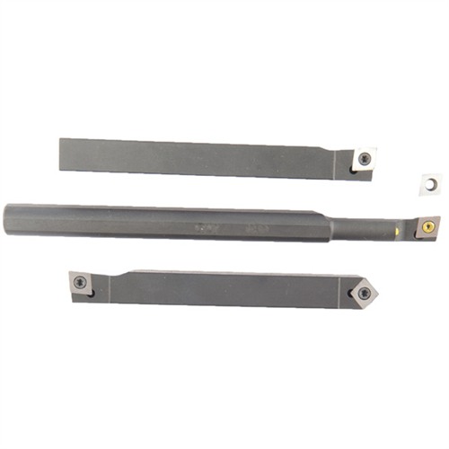 Los kits de herramientas incluyen portaherramientas de acero endurecido e insertos de acero de alta velocidad para trabajos de torneado, roscado, perfilado y corte. Los insertos son de acero de alta velocidad T-15 (HSS) endurecidos a Rc 65-67, y luego se muelen a acabado en todos los lados. Ofrecen un excelente rendimiento a baja velocidad, cortes interrumpidos de precisión y un acabado suave en acero inoxidable, Inconel, Monel, metales exóticos y plásticos.