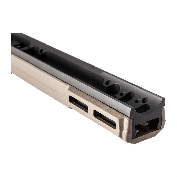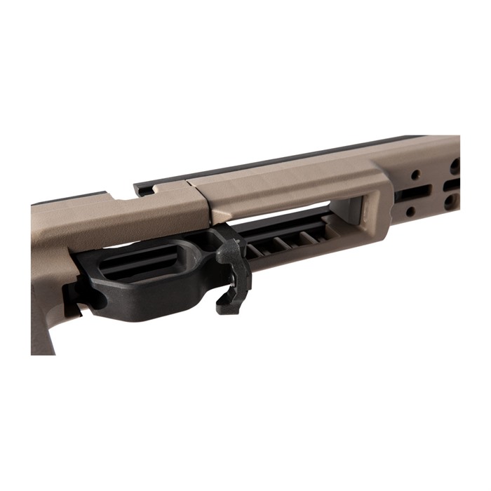 El Chasis Bravo de Kinetic Research Group para el Howa 1500 cuenta con un espina dorsal fabricada en aluminio mecanizado que se extiende a lo largo de toda la longitud de la culata, brindando una rigidez que garantiza el mismo rendimiento que se encuentra normalmente en trabajos de bedding personalizados. El resto de la culata está hecha de polímero reforzado para mayor durabilidad.
