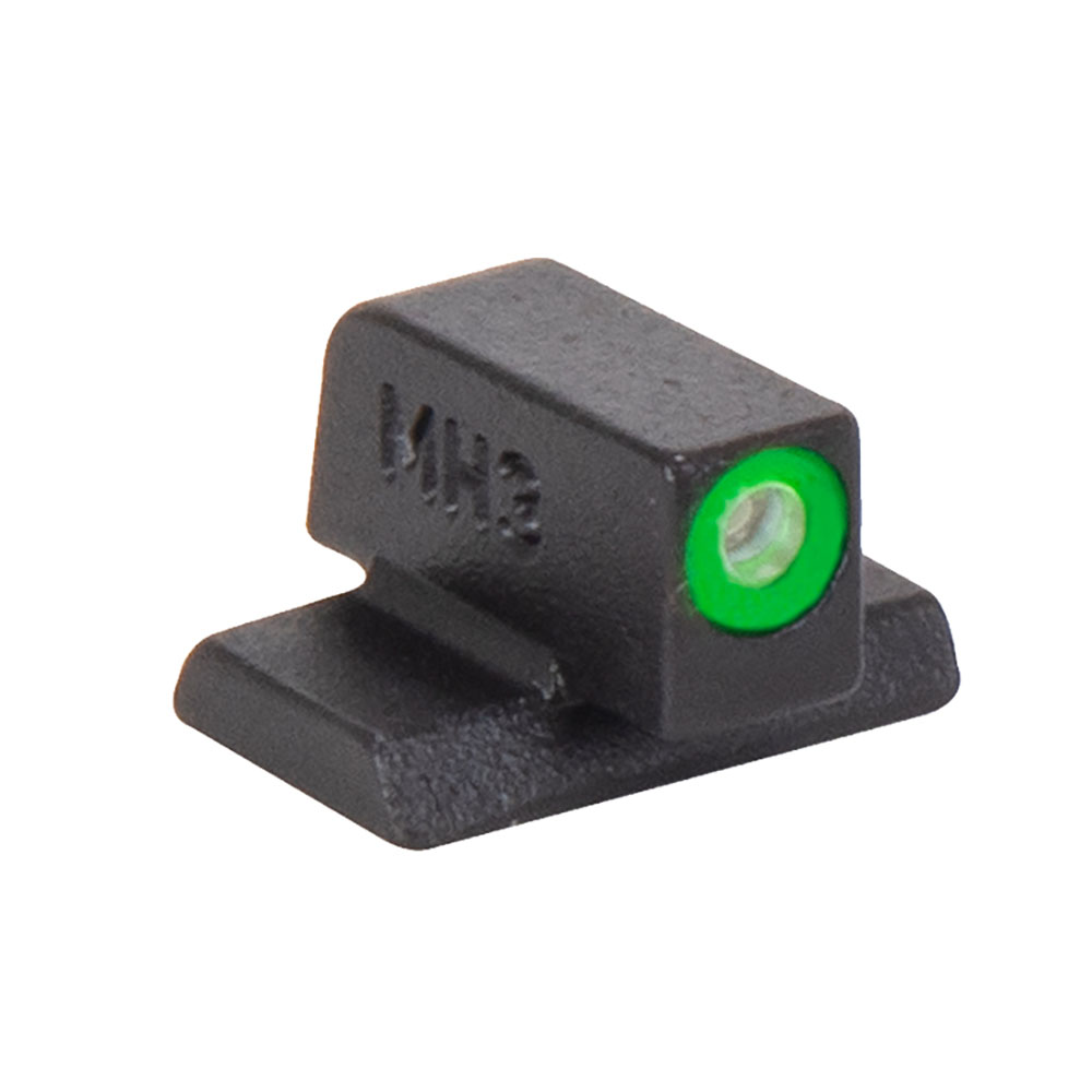 Las miras fijas MEPRO Hyper-Bright™ ofrecen la iluminación más confiable para el día y la noche. Estas miras cuentan con un anillo de color fluorescente extremadamente brillante en verde o naranja para una rápida adquisición de objetivo durante el día. La opción de anillo amarillo es la única que utiliza pintura fosforescente que se carga con luz y brilla en condiciones de poca luz durante un corto período en conjunto con el tritio. Como resultado, tanto las fuentes de tritio traseras como frontales aparecen verdes en condiciones de poca luz y durante la noche.
