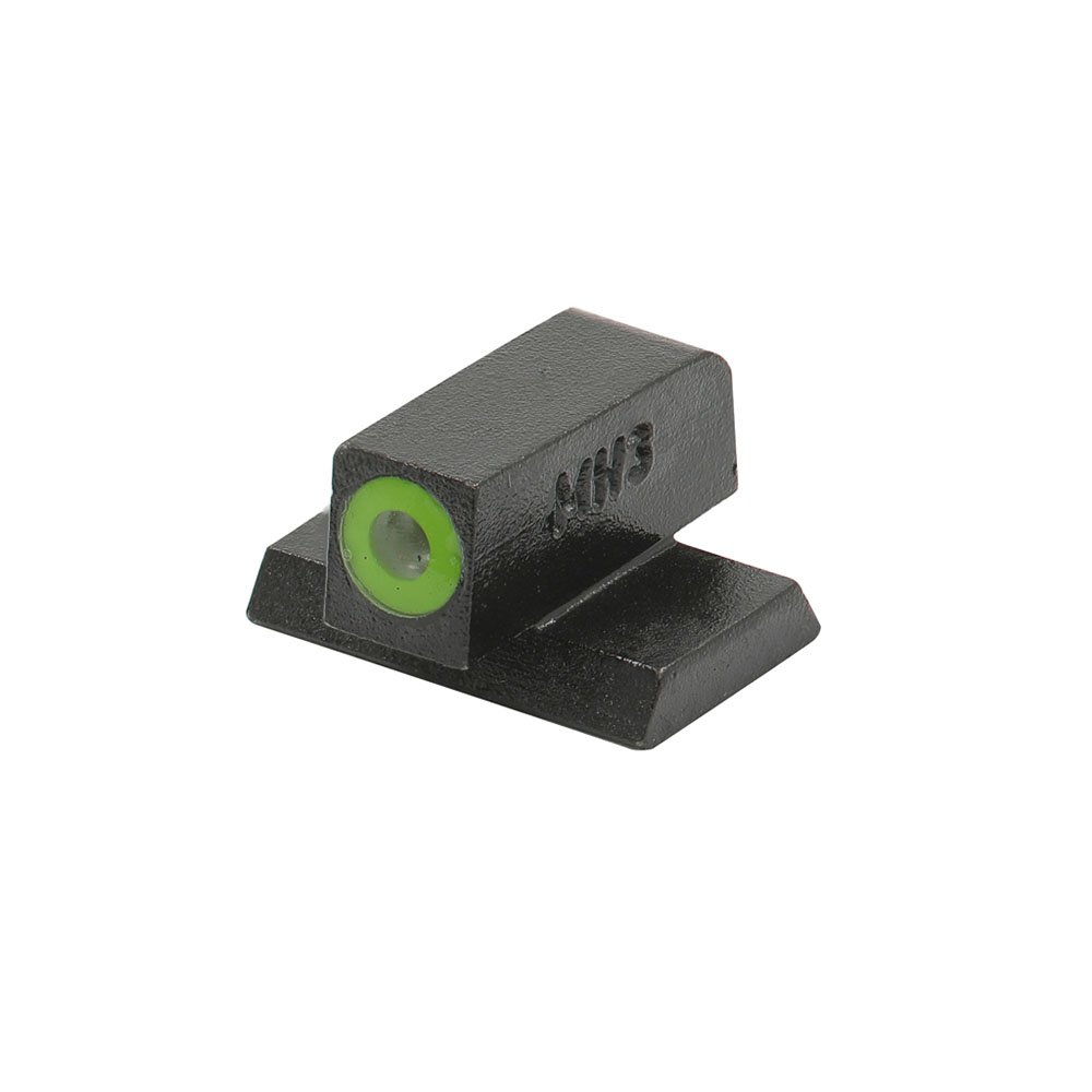 Las miras fijas de día y noche MEPRO Hyper-Bright™ ofrecen la iluminación más confiable para el día o la noche. Las miras fijas Mepro Hyper-Bright™ cuentan con un anillo de color fluorescente extremadamente brillante en verde o naranja para una rápida adquisición de objetivos durante el día. La opción de anillo amarillo es la única que utiliza pintura fosforescente que se carga con luz y brilla en condiciones de poca luz por un corto tiempo junto con el tritio. Como resultado, tanto las fuentes de tritio traseras como frontales aparecen en verde en condiciones de poca luz y durante la noche.