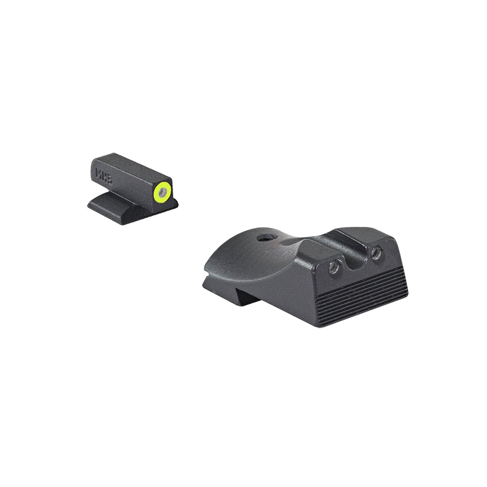 Estas miras fijas autoluminadas cuentan con un anillo frontal de color extremadamente brillante, disponible en verde, amarillo o naranja, que proporciona una visibilidad suprema tanto como mira nocturna como diurna. Los colores contrastantes de las miras delantera y trasera ayudan a los tiradores a enfocar más rápidamente en la mira delantera, lo que permite una adquisición de objetivos más rápida en todas las condiciones de iluminación.