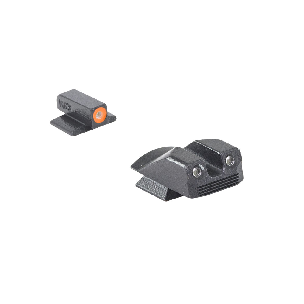 Estas miras fijas autoiluminadas con tritio cuentan con un anillo frontal de color extremadamente brillante, disponible en verde, amarillo u naranja, proporcionando una visibilidad suprema tanto como mira nocturna como mira de día-noche. Los colores contrastantes de las miras delantera y trasera ayudan a los tiradores a enfocarse en la mira delantera más rápidamente para una adquisición de objetivo más rápida en todas las condiciones de iluminación.