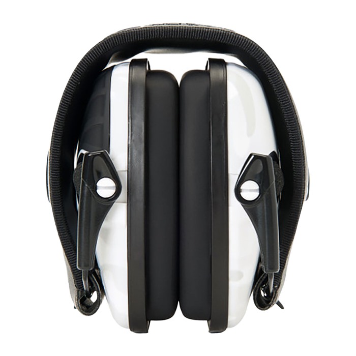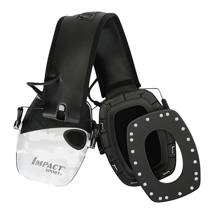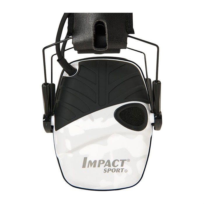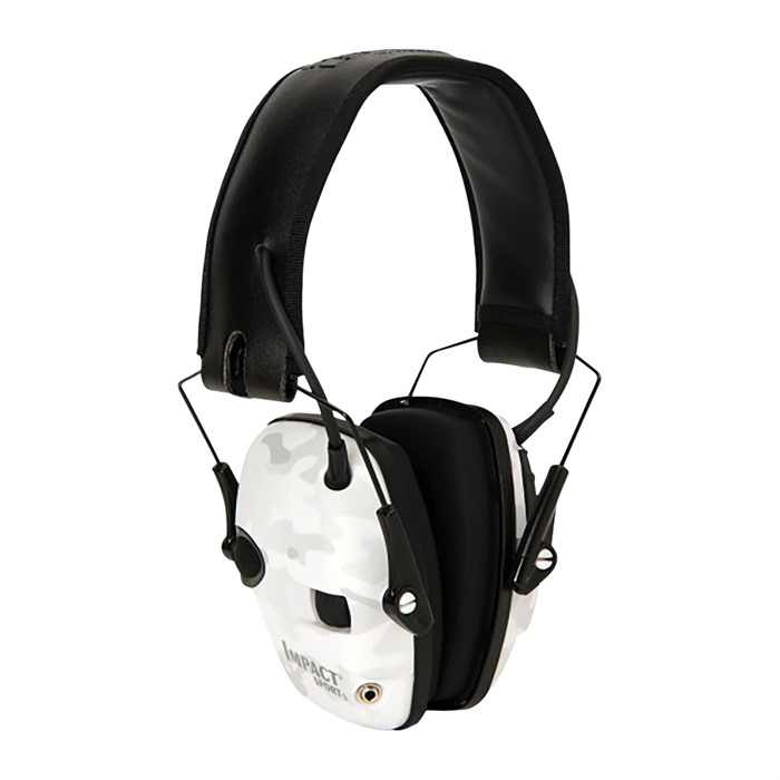 The Howard Leigh Impact Sport Electronic Earmuffs offer compact, lightweight electronic hearing protection allowing you to hear conversations and range commands, while blocking out dangerous noises like gunfire. Internal ultra-fast response electronics amplify ambient sounds to a safe 82 decibels (dB), yet shut down when sounds above 82 dB are detected to let the muff’s passive hearing protection take over. When the earmuffs are in amplification mode, directionally placed stereo microphones even help you hear where the sound is coming from. Built-in AUX input accepts 1/8" (3mm) stereo plug (patch cable included) to connect an MP3 player, radio, or other audio. The Impact Sport Electronic Earmuffs feature an automatically shut-off that activates after 4 hours to preserve battery life. Bottom half of the low-profile ear cups angles in sharply to ensure plenty of clearance when shouldering long guns. Cups fold up neatly into the adjustable head band for convenient storage.