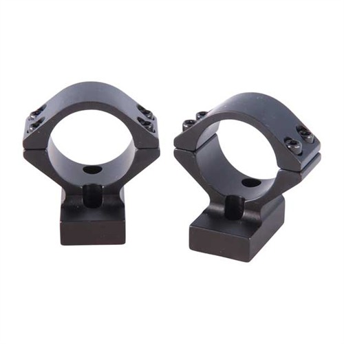 SPECS: 7000 series aluminum, black, anodized, matte finish. Accepts 1" dia. scopes, unless otherwise listed in fits column for 30mm dia. scopes. Height from bottom of ring to top of receiver: Low - .400" (10.1mm), Med - .500" (12.7mm). High - .640" (16.3mm), X‑High - .740" (18.8mm). Approx. weight 2.1 oz. (59 g). Some heights vary, see chart below. Rem. 700 also fits 721/722/725 and 40X models. Rem. Model Seven fits receivers with four screw holes. Savage AccuTrigger fits round top centerfire receivers with AccuTrigger. Win. 70 fits .860" rear hole spacing only.