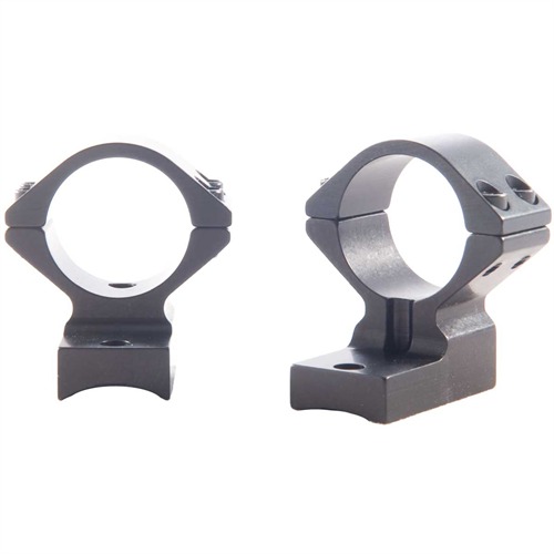 SPECS: 7000 series aluminum, black, anodized, matte finish. Accepts 1" dia. scopes, unless otherwise listed in fits column for 30mm dia. scopes. Height from bottom of ring to top of receiver: Low - .400" (10.1mm), Med - .500" (12.7mm). High - .640" (16.3mm), X‑High - .740" (18.8mm). Approx. weight 2.1 oz. (59 g). Some heights vary, see chart below. Rem. 700 also fits 721/722/725 and 40X models. Rem. Model Seven fits receivers with four screw holes. Savage AccuTrigger fits round top centerfire receivers with AccuTrigger. Win. 70 fits .860" rear hole spacing only.