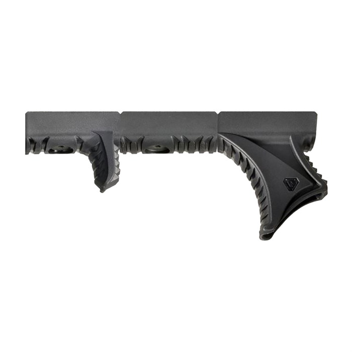 Modern handguard grips have come a long way. They enhance the shooters skills through better recoil management and ease of indexing repeatability for speed. But one grip style may not be suited for everybody, and sometimes rail space is limited so just a hand-stop can fit. But what if you didn't have to settle for just onegrip style? Introducing the Strike Industries Hand Stop Kit. Gone are the days of having to keep extra handstops, foregrips, and other grip accessories laying around. Including 3 sections that can work together or as standalone attachments, there are over half a dozen ways to configure the Link hand-stop kit for different shooting styles.The three sections are made from durable, reinforced, & heat-resistant polymer. Each section uses a single modified T-nut that has been tried and tested for superior lock-up. The HSK is directly mounted to either M-Lok slots or Keymod holes without the need for adapters in between, resulting in a highly ergonomic and secure lock-up. Don’t compromise–overcome, with the Link Handstop Kit.