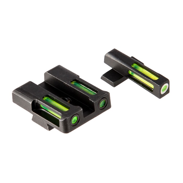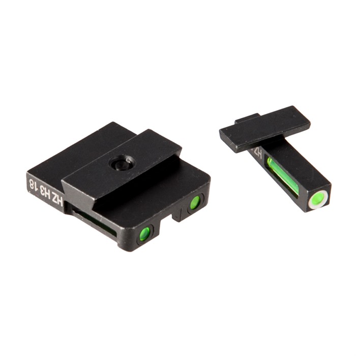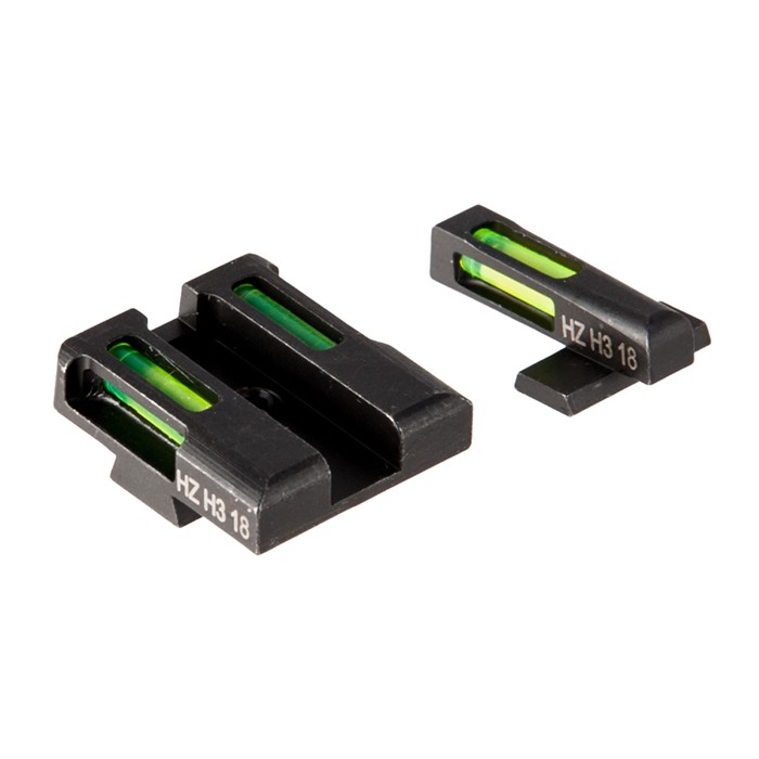 LiteWave H3™ Green Sights from HIVIZ deliver a one-two punch of Tritium and LitePipe fiber optic technology to ensure you can see your pistol's sights 24 hours a day in ANY light conditions. The LitePipe fiber optic rods gather ambient light to produce bright green aiming dots that are as easy to acquire in the sunlight of high noon as in the gathering shadows before sunset. At night, the LiteWave H3™ sights' green self-illuminating Tritium inserts - filled with extra-bright "H3" Tritium gas - take over to maintain full visibility of those three dots. Day or night, a white outline around the front dot helps the shooter distinguish it from the rear dots. Exceptional visibility in ANY light conditions Traditional, intuitive horizontal 3-dot pattern All dots are GREEN - other colors available separately White outline differentiates front dot Steel sight bodies with durable satin black finish Fits factory dovetails Factory height - will not interfere with standard holsters 1911 set fits all Kimber pistols with fixed sights; does not fit Micro Glock models available for standard, large, and G42/43 frame pistols & fit all "Gens" Smith & Wesson M&P fits full-size & compact pistols in all calibers; does not fit CORE, M&P 22 or M&P long slide Springfield XD fits XD, XDS, XDE & XD-M; does not fit XD w/5.25" bbl HIVIZ LiteWave H3™ Green sights are sold as front/rear sight sets and are engineered for a drop-in fit to your pistol's factory slide dovetails (screw holes, in the case of Glocks). Sight bodies are made entirely of steel to ensure thorough protection of the Tritium and fiber optic inserts. Sights are sized for proper clearance in standard holsters for your pistol. Isn't it about time to ride the Wave? Put a set of HIVIZ LiteWave H3™ Green Sights on your pistol, and enjoy the peace of mind you get from knowing whatever the situation you won't lose time trying to find your sights!