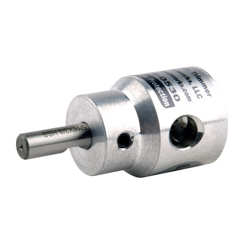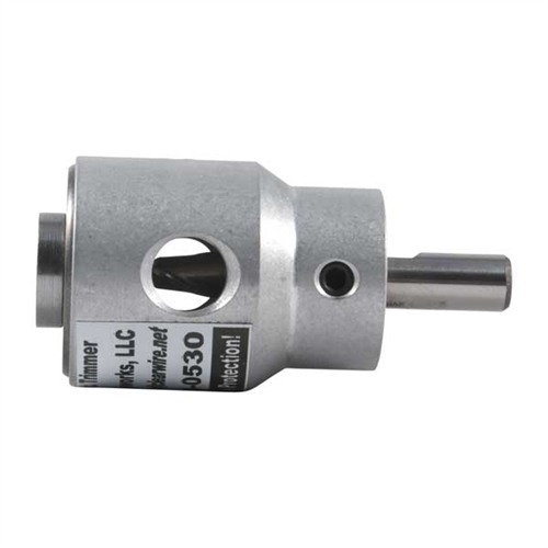 Este trimmer ajustable rota y acorta el cartucho hasta que el hombro contacta con el tope de ajuste preciso, que está montado en un cojinete para evitar que gire y dañe el cartucho. Simplemente toma un cartucho y presiónalo contra el cortador hasta que se elimine el exceso de latón.