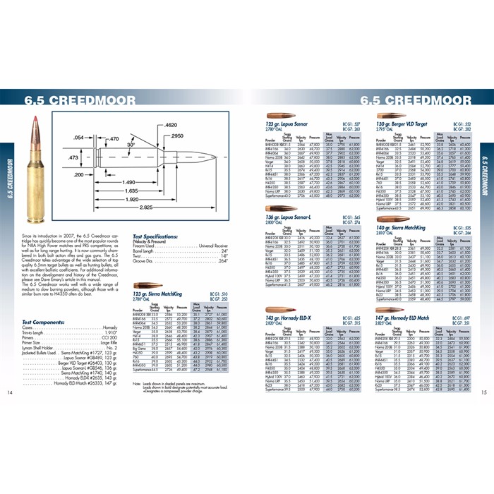 El Manual de Recarga de Largo Alcance de Lyman incluye datos de largo alcance para los populares calibres como .223 Rem., 6mm Creedmoor, .243 Win., 6.5 Creedmoor, .308 Win., .300 Win. Mag., .338 Lapua y más.