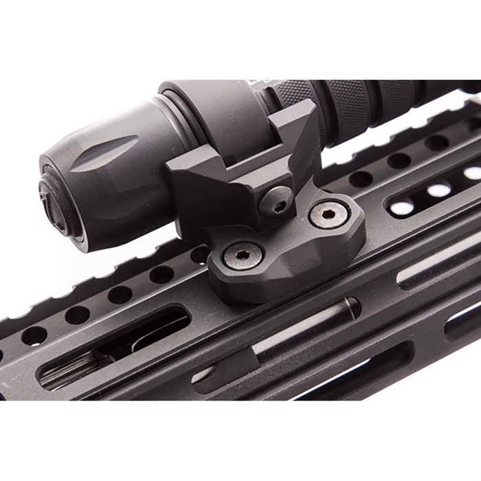 642049218390 El soporte de luz de anillo KeyMod de Arisaka ofrece una forma flexible pero segura de acoplar luces tácticas a tu guardamanos. Utiliza un sistema de anillo anclado verticalmente que viene en dos tamaños para adaptarse a una amplia variedad de luces. El anillo grande aceptará cuerpos de luz con un diámetro de 1.00" a 1.03." El anillo pequeño aceptará cuerpos de luz con un diámetro de 0.84" a 0.88." Se puede instalar y quitar una luz sin necesidad de retirar el soporte de tu guardamanos. La colocación desplazada de la luz al usar el soporte está diseñada para permitir espacio con la mayoría de las miras frontales. Por ejemplo, una luz de 1.03" como la Surefire G2 funcionará con el Magpul Gen 2 MBUS en un Noveske NSR, que es uno de los guardamanos más delgados con 1.48" de ancho. El soporte está mecanizado CNC a partir de aluminio 6061 y anodizado con un recubrimiento duro tipo III. Se adapta a guardamanos KeyMod estándar.Eliminado del programa