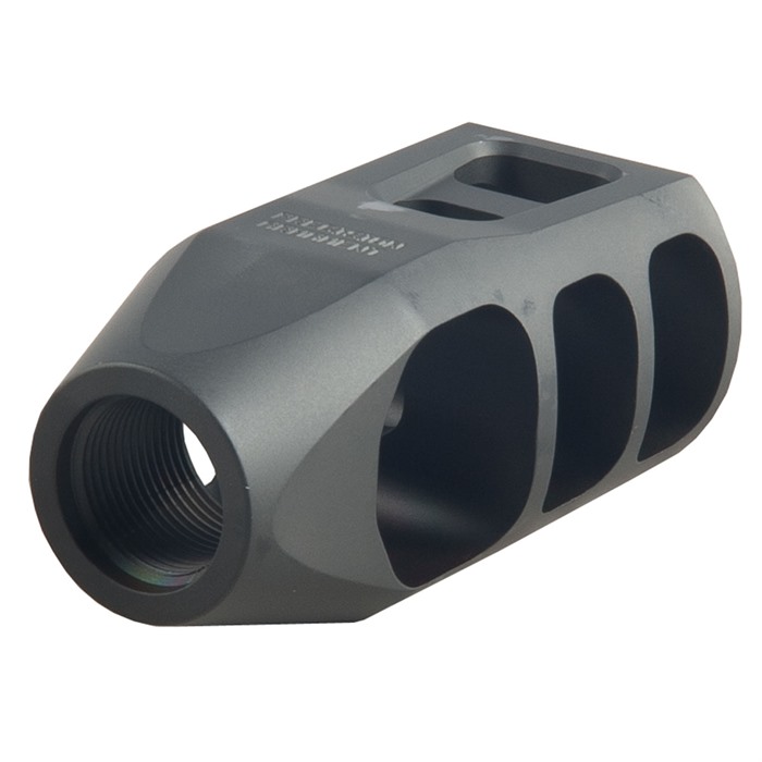 El M11 SEVERE-DUTY MUZZLE BRAKE 6.5 CALIBER de PRECISION ARMAMENT está diseñado para aplicaciones tácticas que requieren una firma de polvo mínima. Este freno de boca cuenta con un enorme deflector de explosión simétrico, combinado con dos deflectores frontales compensados, que redirigen los gases hacia los lados y hacia arriba, proporcionando una reducción de retroceso inigualable mientras minimiza el levantamiento del cañón y la perturbación del suelo.