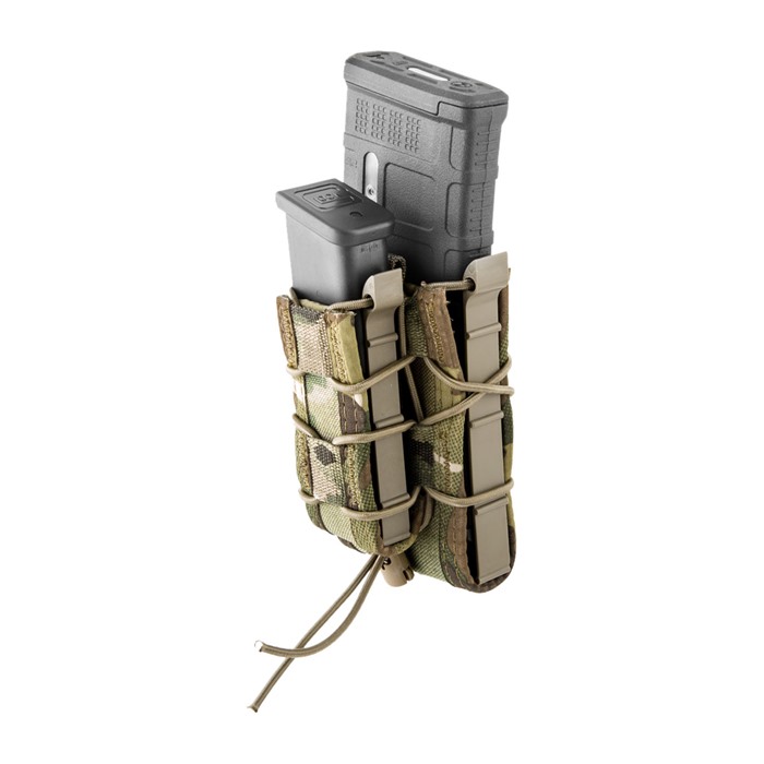 El portacartuchos Double Decker TACO® de High Speed Gear combina un pouch modular para cargadores de rifle y un pouch modular para cargadores de pistola en una unidad segura. Este pouch único puede sostener de manera segura una variedad de combinaciones de cargadores y otros accesorios.