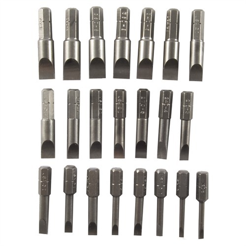 BROWNELLS MAGNA-TIP® SUPER SET ADD-ON PAK The Brownells Magna-Tip® Super Set Add-On Pak is designed to expand your existing Magna-Tip® 22-Bit Starter Super Set into a comprehensive 44-bit collection, enhancing your gunsmithing capabilities. Key Features: Comprehensive Bit Expansion: This add-on pack includes 22 additional hardened steel, hollow-ground Magna-Tip® bits, allowing for a wider range of applications in firearm maintenance and assembly. Precision Engineering: Each bit is precisely crafted to ensure an exact fit in screw slots, minimizing the risk of damage and providing secure engagement during use. Durable Construction: Made from high-quality steel, these bits are built to withstand rigorous use, ensuring long-lasting performance for both professional gunsmiths and firearm enthusiasts. Specifications: Bit Sizes Included: 120-4 120-6 150-3 150-5 180-4 180-6 210-3 210-5 210-7 240-4 240-6 270-3 270-5 270-7 300-4 300-6 340-3 340-5 340-7 360-4 360-6 360-8 Customer Insights: Our customers appreciate the Brownells Magna-Tip® Super Set Add-On Pak for its ability to enhance their existing toolsets, providing the additional bits needed for more specialized or less common firearm maintenance tasks. The precision and durability of the bits ensure reliable performance, making this add-on pack a valuable investment for those looking to expand their gunsmithing capabilities. Incorporating the Brownells Magna-Tip® Super Set Add-On Pak into your toolkit ensures you have the specialized tools necessary to perform a wider range of firearm maintenance tasks with precision and confidence. Its thoughtful design and robust construction make it an essential addition for achieving professional results in gunsmithing.