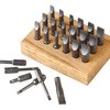 Accesorios de Almacenamiento: Incluye un bloque de banco de roble con 18 recessos perforados, un estuche de plástico transparente y una nueva etiqueta de tapa de caja Super-Set para fácil identificación y organización.