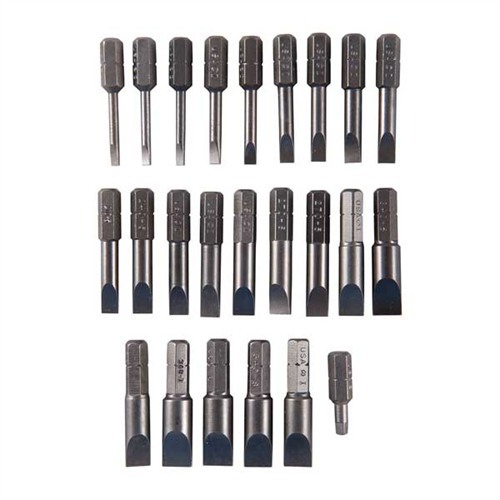 BROWNELLS MAGNA-TIP® UPDATE SET The Brownells Magna-Tip® Update Set is specifically designed for gunsmiths and firearm enthusiasts who own earlier versions of the Magna-Tip® Super Sets. This update enhances your toolkit by replacing thinner bits with thicker, more durable ones, ensuring improved performance and longevity. Key Features: Enhanced Bit Thickness: The set includes thicker bits that provide greater strength and durability compared to the original thinner versions, reducing the likelihood of breakage during demanding tasks. Comprehensive Bit Selection: The update set comprises a variety of bit sizes to accommodate a wide range of screw slots commonly encountered in firearms, enhancing the versatility of your Magna-Tip® Super Set. Organized Storage: The set comes with a clear plastic case and a convenient oak wood block with 18 drilled recesses, allowing for organized storage of your original thin bits after the upgrade. Specifications: Included Bit Numbers: 120-4, 120-5, 120-6, 150-5, 150-6, 180-5, 180-6, 210-5, 210-6, 210-7, 240-5, 240-6, 240-7, 270-5, 270-6, 270-7, 300-6, 300-7, 340-6, 340-7, 340-8, 360-7, 360-8, and H8102XX square recess bit. Storage Accessories: Includes an oak bench block with 18 drilled recesses, a clear plastic case, and a new-style Super-Set box lid label for easy identification and organization. Customer Insights: Our customers appreciate the Brownells Magna-Tip® Update Set for its ability to enhance the durability and functionality of their existing Magna-Tip® Super Sets. The thicker bits provide increased strength, reducing the risk of breakage during use. The organized storage solutions included in the set are also valued for keeping tools neatly arranged and easily accessible. Incorporating the Brownells Magna-Tip® Update Set into your toolkit ensures that you have robust and reliable tools for precise firearm maintenance and assembly. This update enhances the performance of your existing set, making it an essential addition for achieving professional results in gunsmithing.