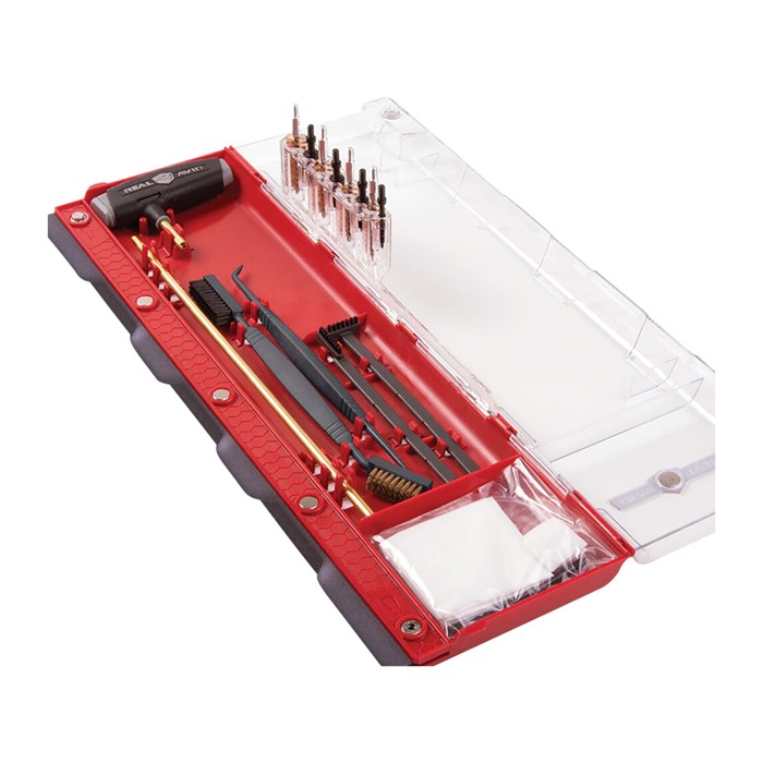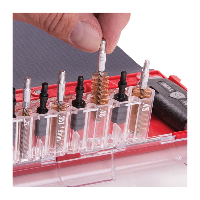 Esta estación combina un tapete de limpieza de nueva generación con un kit de limpieza inteligentemente diseñado, lleno de una extensa colección de herramientas específicas para pistolas.