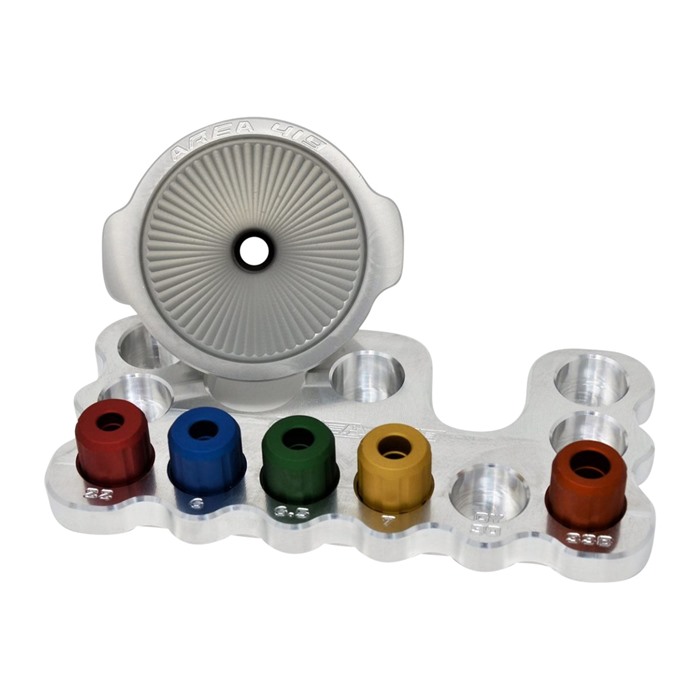 El embudo de pólvora de aluminio billet de Area 419 utiliza un sistema de cabezales intercambiables específicos para cada calibre, convirtiéndolo en el embudo definitivo para recargadores disponible hoy en día. Los embudos de pólvora plásticos universales tienen varios problemas que se resuelven con este sistema, como la adherencia estática y el ajuste inadecuado a ciertos cartuchos.
