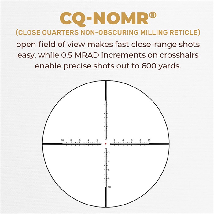 - Utiliza la retícula iluminada CQNOMR para mejorar la visibilidad en condiciones de poca luz.