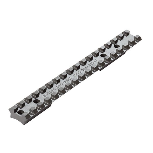 - Alinea el Riel de Mira de Acción Corta Savage (AccuTrigger) de Badger Ordnance con los agujeros de montaje en el receptor del rifle.