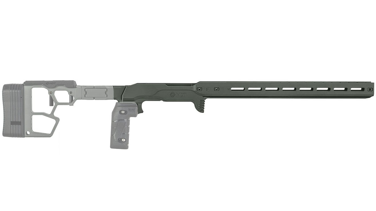 El chasis MDT ACC Premier GEN2 lo hace fácil. Cuenta con un forend compacto de 15” - ideal para cañones que comienzan en 17” - con un perfil ancho, grueso y plano diseñado para eliminar la flexión y la torsión. Ya sea que estés disparando desde barricadas o props de PRS, obtienes una plataforma sólida y sin movimiento.
