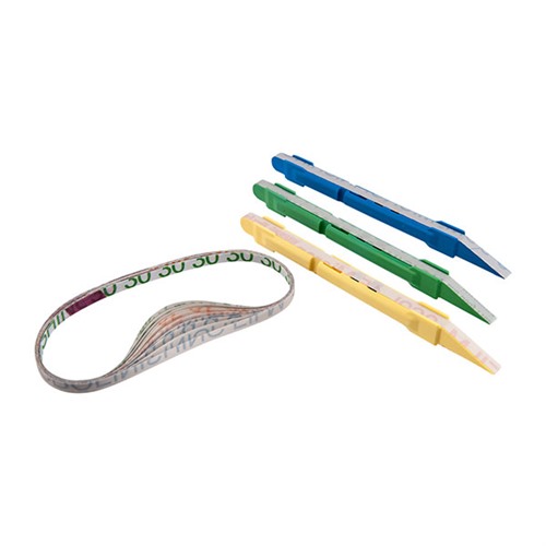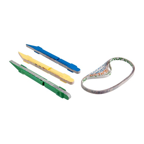 La película de microacabado 3M es un abrasivo de corte rápido para un acabado preciso, uniforme y con tolerancias cerradas. El respaldo de poliéster de alta resistencia y la resina mineral de óxido de aluminio clasificada en micrones están unidos para mayor durabilidad. Este material es ideal para la armería, la fabricación de joyas, la reparación de relojes y dispositivos médicos. Este material funciona bien tanto en metal como en plástico. Cada kit contiene 3 Detalladores de Lijado junto con 15 Cintas de Película de Microacabado; 5 cintas de 3 grits diferentes. El Detallador de Lijado es ideal para terminar esas áreas de difícil acceso. La cinta abrasiva se puede indexar. El Detallador de Lijado tiene un resorte que aplica tensión a la cinta abrasiva. Después de que la cinta abrasiva se agote, simplemente comprime la herramienta y reemplaza la cinta abrasiva por una nueva. Están codificadas por colores para una fácil identificación del grit. Negro: 60 Micrones, 220 Grit Gris: 50 Micrones, 270 Grit Rojo: 40 Micrones, 320 Grit Verde: 30 Micrones, 400 Grit Amarillo: 15 Micrones, 600 Grit Azul: 9 Micrones, 1200 GritEliminado del programa