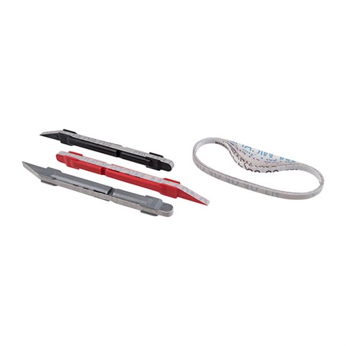 Funciona excelentemente tanto en metal como en plástico. Cada kit incluye 3 Sanding Detailers junto con 15 Micro-Finishing Film Belts; 5 correas de 3 granos diferentes. El Sanding Detailer es ideal para alcanzar áreas difíciles.