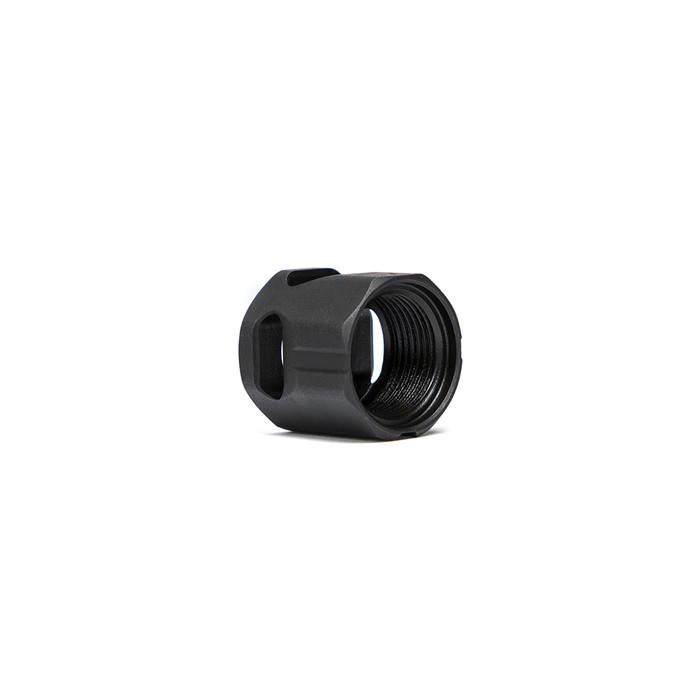 The CIRCLE edition pistol compensator from the Strike Micro Threaded Comp (SMTC) line can work with just about any size slide using a threaded barrel with 1/2"x28 Threads Per Inch (TPI). This simple and sleek CIRCLE design is for those looking for a minimalist sized compensator that still redirects gas to mitigate felt recoil and reduce muzzle rise. SI internal testing has typically seen a reduction average range (dependent on application) of 8-15% in felt recoil. The included O-ring (with spares) is used to help time and retain the SMTC CIRCLE comp. Originally designed for smaller compact, sub-compact and micro sized pistols, the SI styling of the CIRCLE maintains fitment with your existing holster or majority of holsters on the market. On full size or any size pistols, consider it as also a thread protector with added muzzle control. Made from AISI 1144 steel bead blasted with Quench Polish Quench (QPQ) process finish, the Strike Micro Threaded Comp - CIRCLE is small and lightweight at only a total length of 16.3mm (0.64”) while redirecting gas for recoil reduction to keep you on target. WARNING: Due to reduction of slide energy, recoil spring tuning might be required when using this compensator WARNING: For threaded barrels with no shoulder, the o-ring included with this compensator will not work and cannot be used to help with timing. Please use Loctite® Threadlocker Red to secure compensator to threaded barrel but apply an appropriate amount and not too much. Check this compensator as part of your routine maintenance. All installations must be done by a certified professional gunsmith only and properly tested to pass all safe and function tests. Package Contents: x1 Strike Micro Threaded Comp – CIRCLE x3 O-ring Product Features: Micro compensator that can work with just about any size slide using a threaded barrel (1/2”-28 TPI) O-ring used for timing and retaining compensator Minimalist design for fitment in most holsters on the market SI styling that is universal to almost all OEM and aftermarket slides on the market Designed to work with micro, sub-compact, compact and full size pistols Lightweight Made from AISI 1144 steel bead blasted with Quench Polish Quench (QPQ) process finish COMPATIBILITY: With any 1/2”x28 TPI threaded barrel Calibers: 9mm and .357 SIG -CALIFORNIA PROPOSITION 65 WARNING:- WARNING: This product contains chemicals known to the State of California to cause cancer and birth defects or other reproductive harm. For more information: www.P65Warnings.ca.gov
