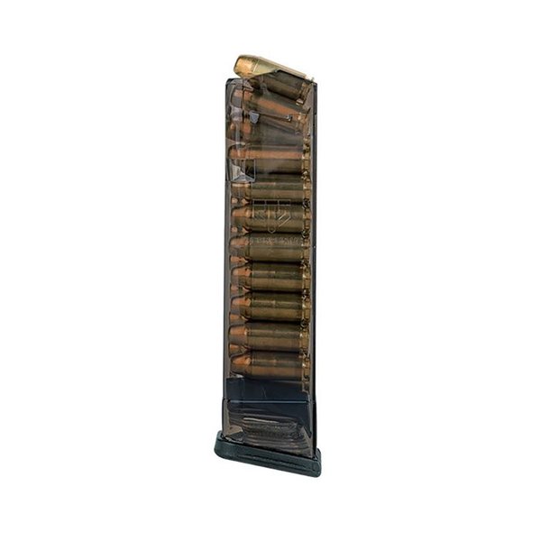 Los cargadores de polímero translúcido legales para competencias de ETS son compatibles con los modelos Glock .40 S&W 22, 23, 24, 27 y 35. Están disponibles en configuraciones de 19 (140mm), 24 (170mm) y 30 (210mm) disparos, y son compatibles con Glock de la Generación 1 a la Generación 4.