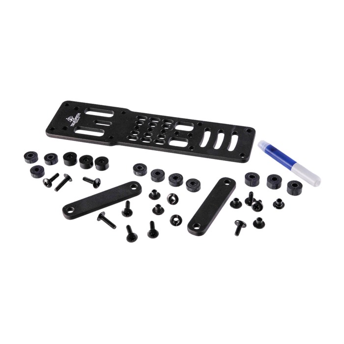 Cada Modular Holster Adapter viene con un kit completo de hardware que incluye tornillos, postes, espaciadores y bloqueador de roscas de varios tamaños para el montaje. El adaptador está disponible en acabados anodizados en negro y tierra oscura.