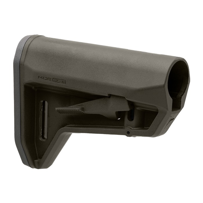 The MOE SL-M Carbine Stock – Mil-Spec is a drop-in replacement buttstock for AR15/M4 Mil-Spec carbine buffer tubes. It was specifically developed for ultra-compact, PDW-style military platform requirements and for users desiring a smaller, lighter stock. Similar to the SL-K, the SL-M features a shorter and slimmer profile that is optimized for PDW-length receiver extensions. With its small, non-slip rubber butt-pad and an angled toe, the SL-M was engineered to support shoulder transitions, even while wearing body armor and modular gear. It includes a unique, ambidextrous release latch that is shielded to prevent accidental deployment and minimizes rattle on the receiver extension without requiring additional locks, levers, or springs. The 1.25" footman's loop accepts an optional M-LOK® QD Sling Mount for push-button style QD sling swivels. Made in the USA. Internal release latch feature mitigates rattle and wobble Ambidextrous shielded adjustment lever Angled toe for easy shouldering Non-slip rubber butt-pad Reinforced polymer construction 1.25” ambidextrous sling loop Accepts M-LOK QD Sling Mount for QD sling swivel capability