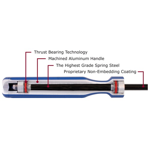 Los rodamientos en cada extremo del mango permiten que la varilla gire suavemente, manteniendo el jag o cepillo en contacto total con el estriado. Los mangos codificados por colores te ayudarán a asegurarte de que elijas la varilla del calibre correcto. Cada varilla tiene un suave ferulo de aluminio en el extremo roscado para ayudar a proteger la recámara o el cañón de daños.