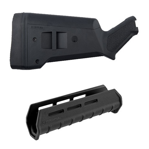 The write up says this kit is for the 500, but the forend box indicates it is for the 590/590A1, while the box for the stock includes the 500 as a model that it will fit.