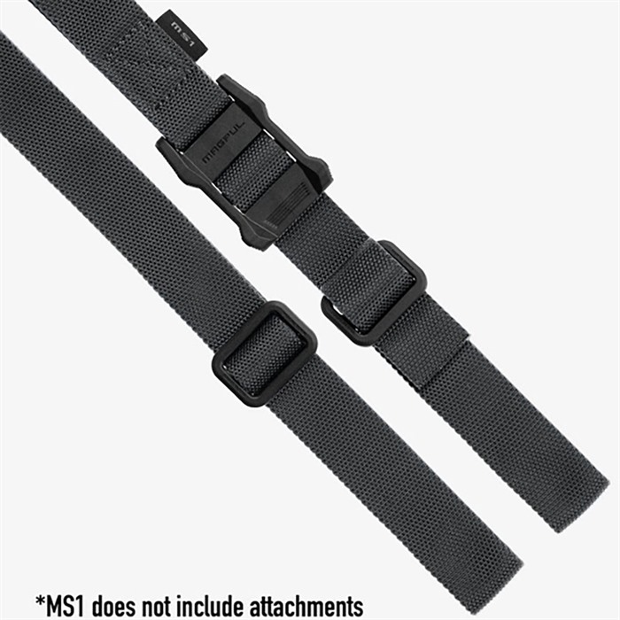 All new for 2014, the MS1 Sling System takes the Magpul multi-mission sling concept to new levels of function, capability, and modularity. The entire system is based on the MS1, a dedicated two-point sling built around our innovative new slider, which provides rapid sling adjustments without the tails, loops, or bulk of other solutions. Even while wearing gloves, the new slider is faster, easier, and lower profile than previous slings, but your sling setting stays put, even under load. The MS1 comes without connecting hardware so you can choose what you need for your specific application. Magpul Paraclips and push-button QDs are available individually to complement our selection of sling attachment points. For the option to convert to one-point use, simply add the appropriate one-point adapter that works with your choice of hardware. Melonite™ and manganese phosphate finished steel with custom snag-free high durability 1-1/4" webbing. Made in U.S.A. Available in Black, Coyote and Ranger Green.