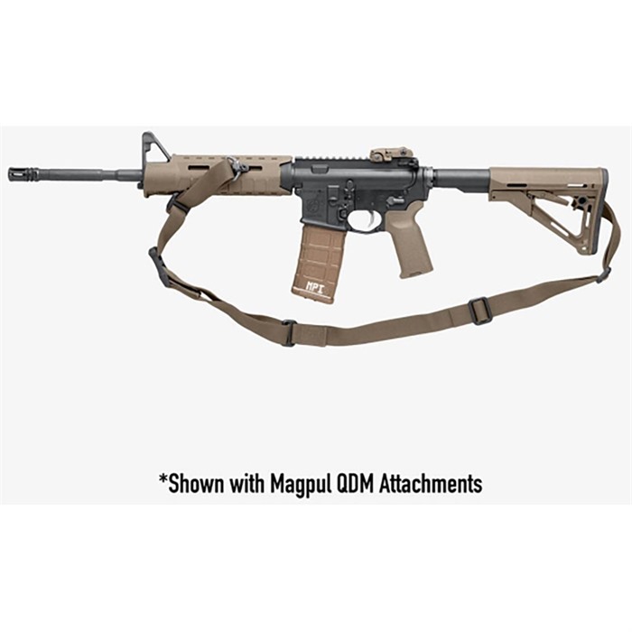 All new for 2014, the MS1 Sling System takes the Magpul multi-mission sling concept to new levels of function, capability, and modularity. The entire system is based on the MS1, a dedicated two-point sling built around our innovative new slider, which provides rapid sling adjustments without the tails, loops, or bulk of other solutions. Even while wearing gloves, the new slider is faster, easier, and lower profile than previous slings, but your sling setting stays put, even under load. The MS1 comes without connecting hardware so you can choose what you need for your specific application. Magpul Paraclips and push-button QDs are available individually to complement our selection of sling attachment points. For the option to convert to one-point use, simply add the appropriate one-point adapter that works with your choice of hardware. Melonite™ and manganese phosphate finished steel with custom snag-free high durability 1-1/4" webbing. Made in U.S.A. Available in Black, Coyote and Ranger Green.