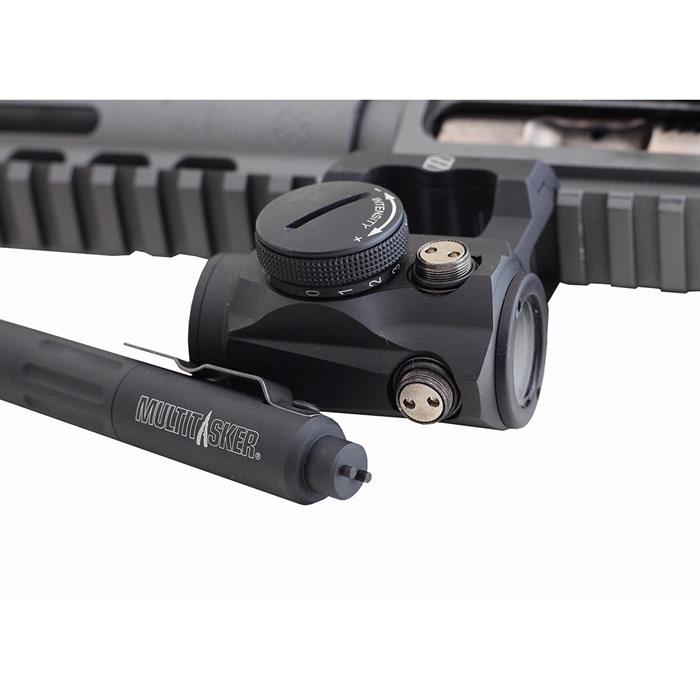 El ultra compacto MultiTasker Twist cabe en tu bolsillo como un bolígrafo y ofrece un montón de herramientas críticas de mantenimiento y ajuste para tu "rifle deportivo moderno" y otras armas.