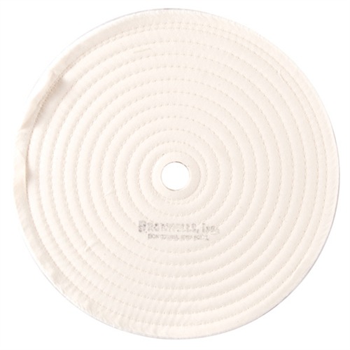 Los MUSLIN WHEELS, específicamente la MUSLIN POLISH WHEEL STITCHED 10" X 3/8" THICK, 7/8" ARBOR de BROWNELLS, son una herramienta esencial para cualquier trabajo de pulido.