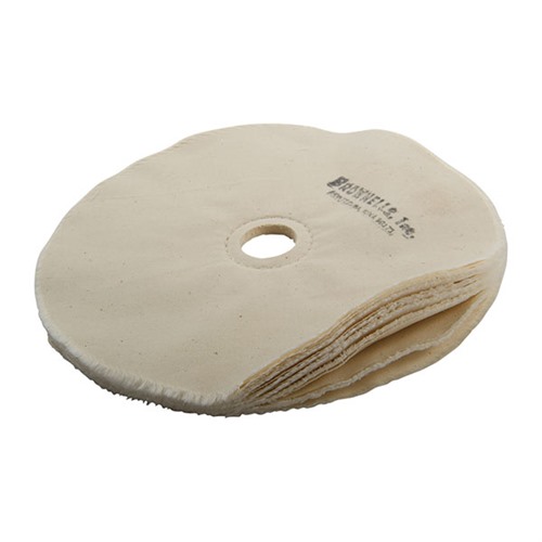 050806002937 Ruedas cosidas en espiral - se utilizan principalmente para la primera operación de limpieza en la pistola con No. 140 Polish-O-Ray"! para eliminar el viejo azul, suciedad y óxido y llevar el metal a un acabado brillante. También son utilizadas por algunos operadores en lugar de las ruedas de fieltro suave; debido a su naturaleza más flexible, se debe tener mucho cuidado de no redondear los bordes o alargar los agujeros de tornillo y pasador. Muslin suelto - se utiliza después de cada cambio de grano para suavizar las marcas de grano y preparar la superficie para el siguiente grano más fino. También se utiliza para dar el acabado final a la pistola justo antes de aplicar el azul. Nota: - Usa suficientes secciones para hacer cada rueda tan ancha como tu motor de pulido pueda manejar - un mínimo de tres secciones por rueda. Nunca intentes usar la misma rueda para diferentes números de grano. Después de que una rueda esté asentada y en uso, márcala con el número de grano que se usará en ella y la dirección de rotación. Esto aumentará la vida útil de la rueda, dará mejores acabados y ahorrará horas de trabajo.Plazo de entrega de aproximadamente 14-21 días.