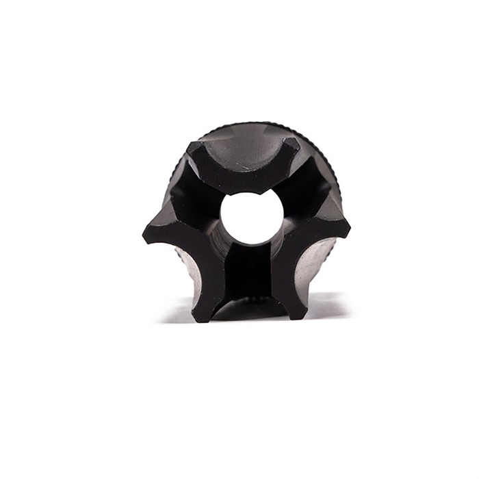 Faxon's invented "MuzzLok" feature on this device allows for easy timing and installation of your device without the need for a crush washer or shims. By using the extension nut to adjust the length of the device, you can adjust the rotational timing. It is recommended that you tighten the device to the recommended torque specification of 20-25 foot pounds. By not having to overcome the resistance of the crush washer, this allows devices to be removed and reinstalled in the field if desired. FEATURES No crush washer needed. Attach and remove in the field. Time your muzzle device quickly and easily. Note: Cannot be shipped to CA