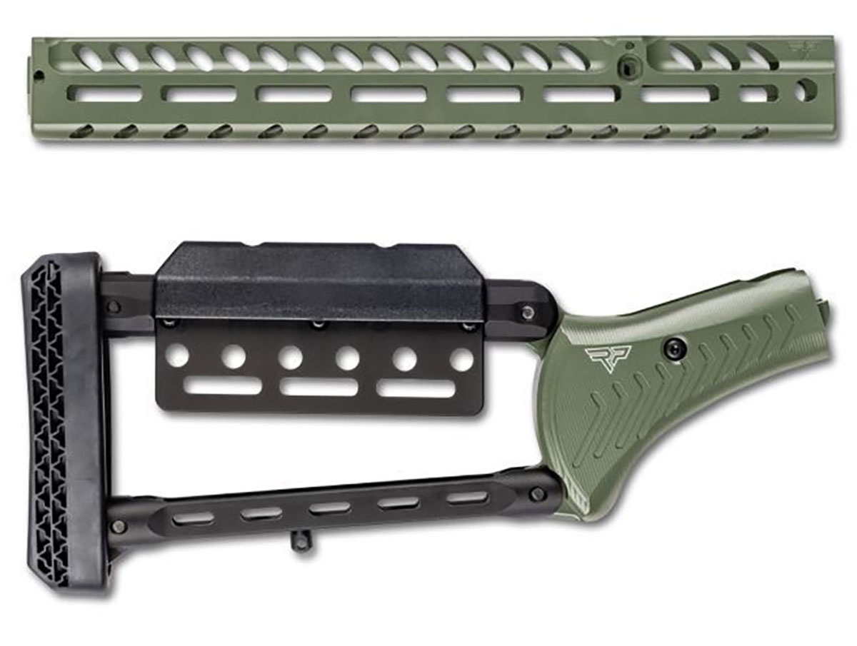 850078134417 Ranger Point M-LOK Handguard for Marlin 336 and Compatible Models Fits: Glenfield, Marlin 336 30-30, 30-30AW, 35 Rem, 444, 41 Mag, 1894C, and CS 357 Does not fit: Marlin Dark 30-30, octagon barrels, Marlin P/CL, 444 barrel band models (requires new dovetail cut). Specifications Material: Precision-machined from solid billet aluminum for maximum rigidity and reduced weight. Length: 13.25" (336.5 mm) – Width: 1.5" (38 mm) – Height: 1.6" (40.6 mm) – Weight: 5.8 oz (165 g). 24 M-LOK slots, 4 flush cup holes for sling swivels. Secure bedding with 4 set screws to prevent lateral shift. Ergonomic design: Slim profile, deep finger grooves, flat bottom for rest stability, enhanced grip texture. Integrated loading port cutout for easy tube reloads. DIY-friendly, easy installation. Compatible with shortened barrels and suppressors. Deburred and polished for smooth, comfortable handling. Includes: 1x Ranger Point M-LOK Handguard (13.25") with barrel band and screws. Ranger Point Adjustable Butt Stock Material: 6061 billet aluminum, KG Gun Kote (Moss). Weight: 22 oz (624 g). Adjustable cheek riser and AR-style 6-position butt plate with DEAD BLOW recoil pad. M-LOK panel with two sling swivel holes (left/right installation). Ideal for tall optic setups with customizable comb height.Se recibirá del proveedor después de realizar el pedido. Plazo de entrega de aproximadamente 3-4 meses