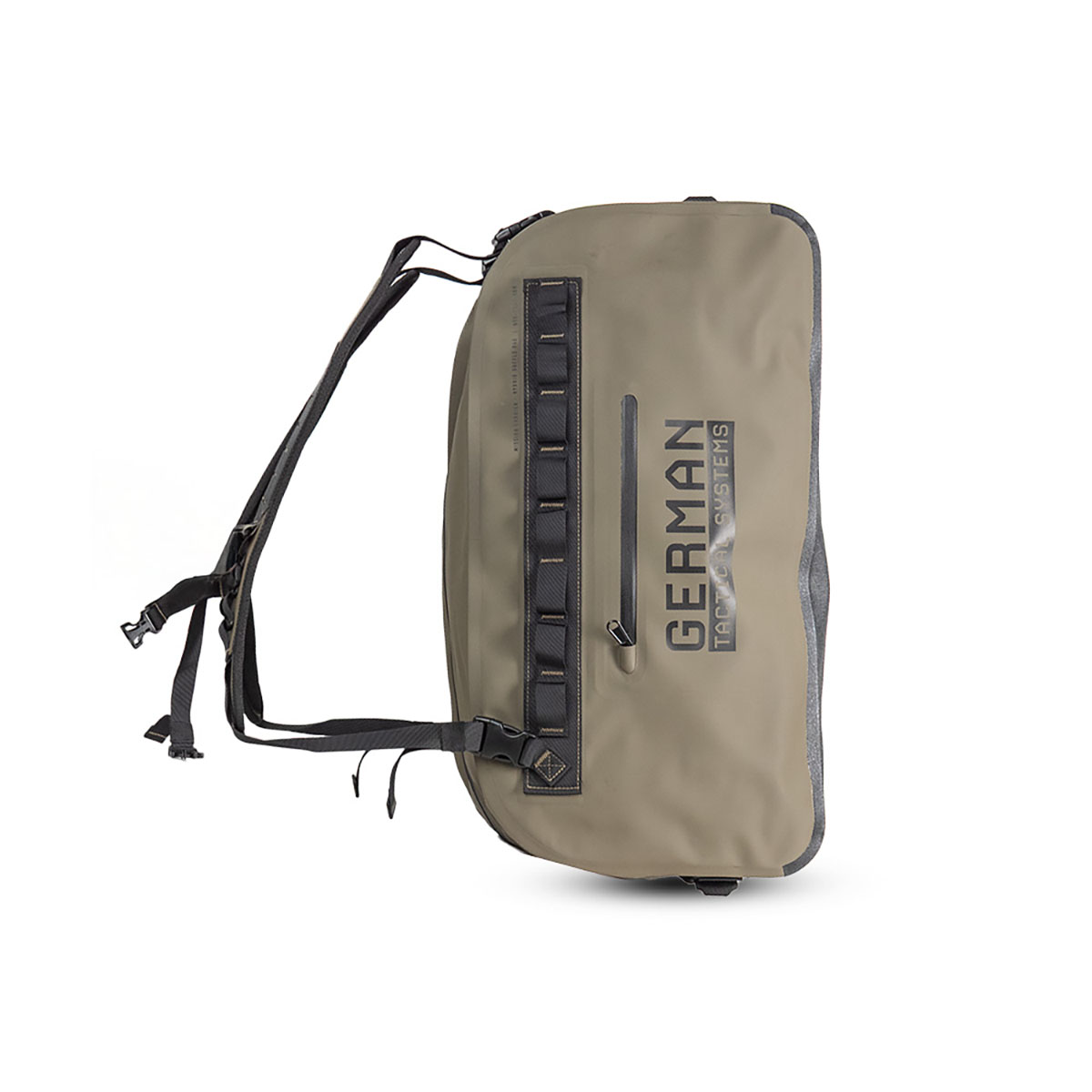 0726529840704 The Mission Carrier from German Tactical Systems is built for those who carry more and demand the same rugged reliability found across our waterproof gear line. Designed for field operators, outdoor professionals, and anyone on the move, this Hybrid Duffle Bag offers maximum versatility, comfort, and protection from the elements. Hybrid Carry System: The Mission Carrier can be carried as a traditional duffle or worn like a backpack. The detachable straps can be crossed over or secured together with integrated Velcro loops, allowing you to customize your carry setup based on the mission. Waterproof Protection: Built from heavy-duty, waterproof materials that shield your gear from rain, mud, and harsh environments. Perfect for field use, travel, or everyday tactical applications. Spacious Main Compartment: A large waterproof main compartment with internal securing straps keeps your gear organized and stable, even in motion. Internal Storage: Includes two large inner side pouches for structured organization of smaller equipment, tools, or clothing. External Side Pouches: Additional outer compartments provide quick access to frequently used items without opening the main storage area. Full-Length Utility Loops: Both sides feature continuous loops designed for attaching carabiners, accessories, or securing the Mission Carrier to vehicles, boats, or racks during transport. Adaptable and Rugged: Whether you’re on deployment, at the range, or heading out for a weekend operation, the Mission Carrier stands up to heavy use while keeping your gear dry, accessible, and secure. Volumen = 51 L Length = 59cm Width = 27cm Height = 32cmPlazo de entrega de aproximadamente 6-10 días.