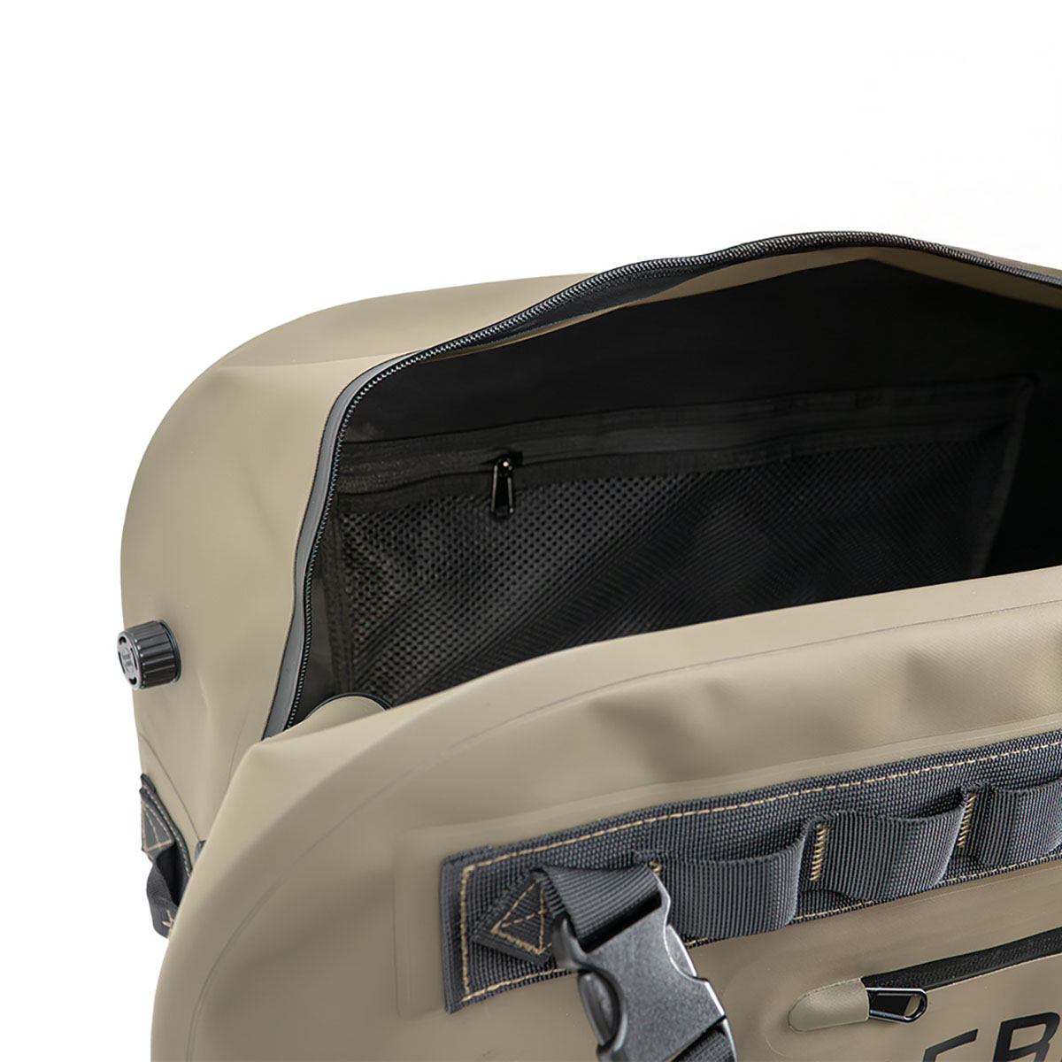 Ambos lados cuentan con bucles continuos diseñados para sujetar mosquetones, accesorios o asegurar la Mission Carrier a vehículos, barcos o estanterías durante el transporte.