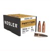 NOSLER® PARTITION 30 CALIBER (0.308”) FLAT BASE SPITZER RIFLE BULLETS The benchmark for hunting bullets since 1948, Nosler’s Partition® bullet is the cornerstone upon which the entire company was founded. The Nosler® Partition® front lead core is designed to expand and transfer massive shock and energy while the partition houses the rear lead core to maximize weight retention. The Nosler® Partition® delivers bone crushing energy, a massive wound channel, and deep penetration. FEATURES: Nosler Engineering Nosler's special lead-alloy, dual core provides superior mushrooming characteristics at virtually all impact velocities. Fully Tapered Copper-Alloy Jacket Ruptures instantly at the thin jacket mouth, yet the gradual thickening along the bullet’s axis controls expansion and curls the jacket uniformly outward at high and low velocities. Nosler's Integral Partition Supports the expanded mushroom and retains the rear lead-alloy core. The enclosed rear core retains more than two-thirds of the original bullet weight for deep penetration. Dual Core Construction Every Partition® bullet in the Nosler® line delivers optimum length, weight and ogive design for maximum in-flight and terminal performance. Special Crimp Locks Adds strength to resist deformation under the pressure of heavy magnums.