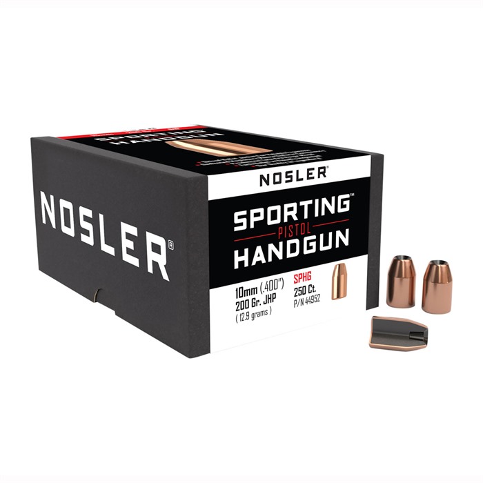 ASSURED STOPPING POWER™ 10MM (0.400") JACKETED HOLLOW POINT PISTOL BULLETS Whether you punch paper, shoot steel or use your handgun for hunting, Nosler ensures you have the very finest in accuracy, consistency and overall quality. Our Assured Stopping Power™ bullets are designed with a skived copper-alloy jacket and hollow point for rapid and consistent expansion. The bullet’s pure lead core is encased in the copper-alloy jacket for maximum bullet stability and balance while further enhancing accuracy. Like their premium rifle bullets, Nosler hand-inspects all ASP bullets for quality assurance and then polishes them to a bright finish.