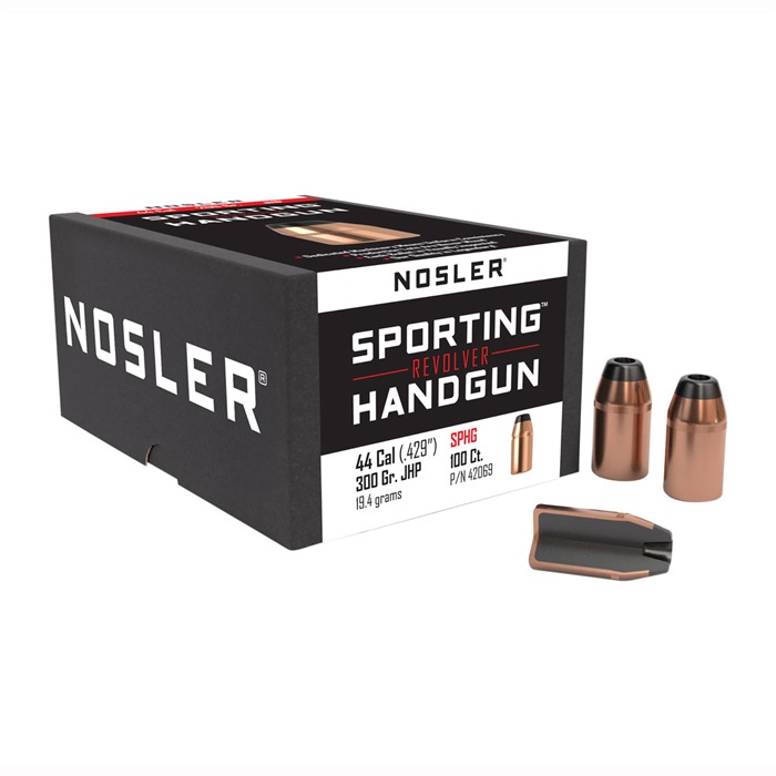 NOSLER SPORTING HANDGUN 44 CALIBER (0.429") JACKETED HOLLOW POINT REVOLVER BULLETS Whether you punch paper, shoot steel or use your handgun for hunting, Nosler ensures you have the very finest in accuracy, consistency and overall quality. Designed to expand rapidly upon impact, the pure lead core is copper-alloy jacketed for maximum bullet stability and balance while further enhancing accuracy. The bullet’s well-defined cannelure holds the jacket and core together and allows a tight crimp, eliminating bullet movement within the case. Like our premium rifle bullets, Nosler hand-inspects all Sporting Handgun bullets for quality assurance and then polishes them to a bright finish.